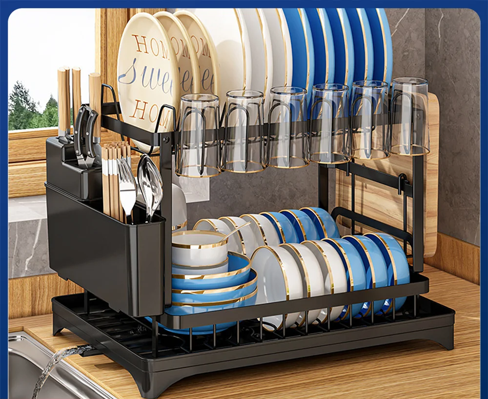 Égouttoir à vaisselle 2 niveaux avec plateau – Gain de place, organisation et propreté