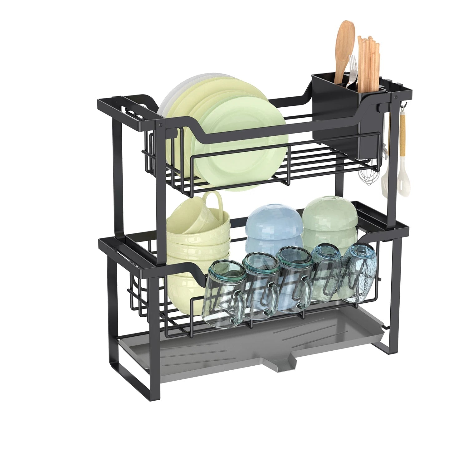 Égouttoir à vaisselle à 2 niveaux avec plateau égouttoir