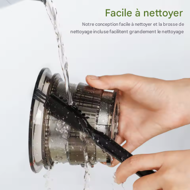 Son système de pression lente réduit l’oxydation, garantissant des jus plus denses, plus savoureux et qui se conservent mieux.