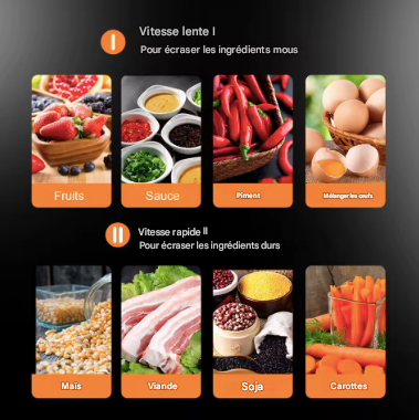Idéal pour viande, légumes, fruits, herbes, noix, sauces et purées