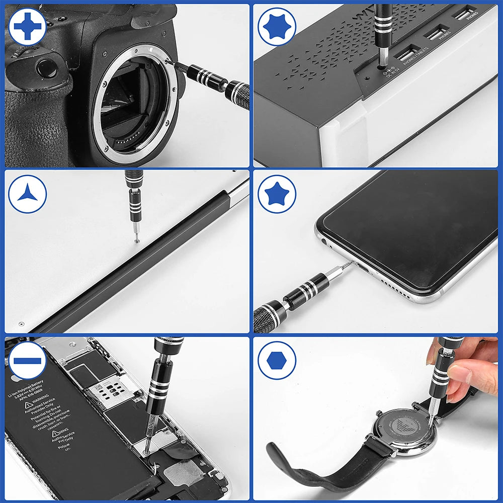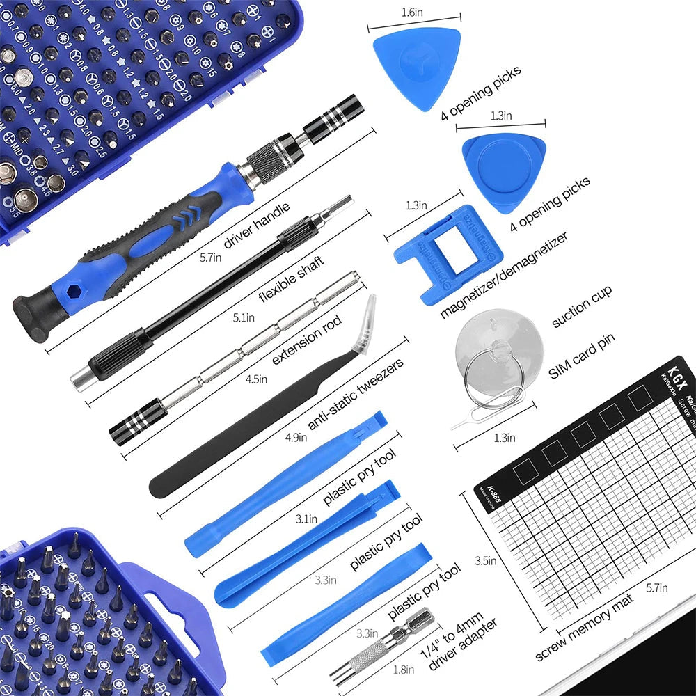 Le kit de tournevis magnétique professionnel 122 pièces contient absolument tout ce dont tu as besoin pour intervenir sur les appareils les plus délicats.